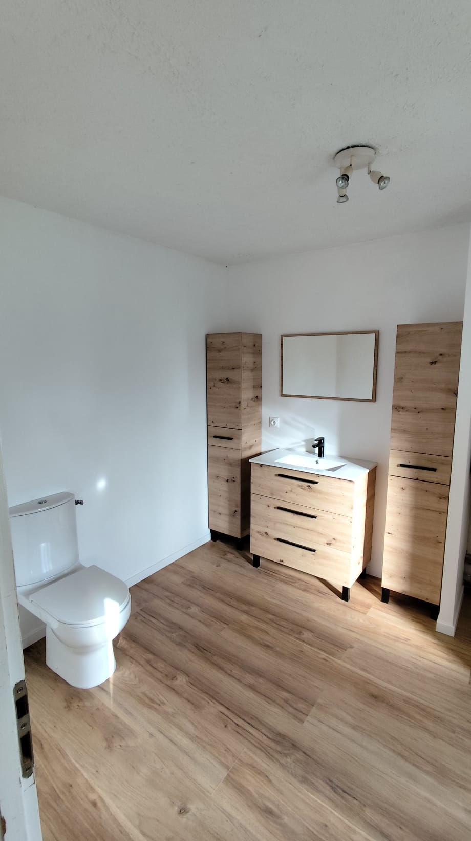 Ici, une salle de bain vieillissante laisse place à un espace moderne, épuré et fonctionnel.